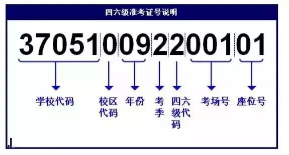 四六级准考证号码解析:四六级准考证号一共由15位组成(如下图)